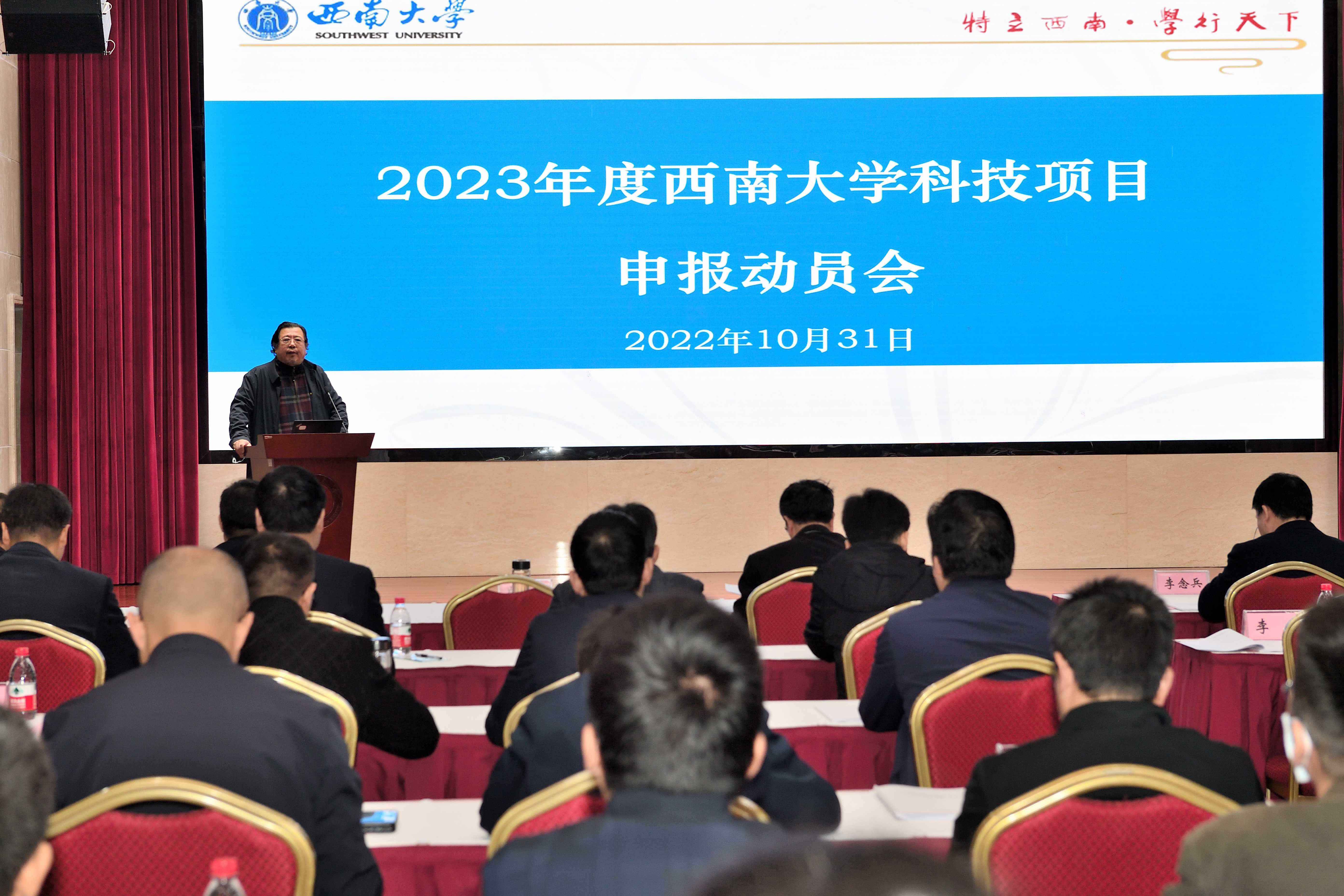 10月31日上午,学校在东方红会议厅召开2023年度Beat365中国唯一官方网站科技项目申报动员大会。重庆市科学技术局副局长许志鹏,学校党委书记李旭锋,副校长崔延强出席会议,学校二级教学科研单位主要负责人、分管领导,校管独立科研机构负责人,自然科学类各科研基地负责人,科学技术处相关人员参加会议。