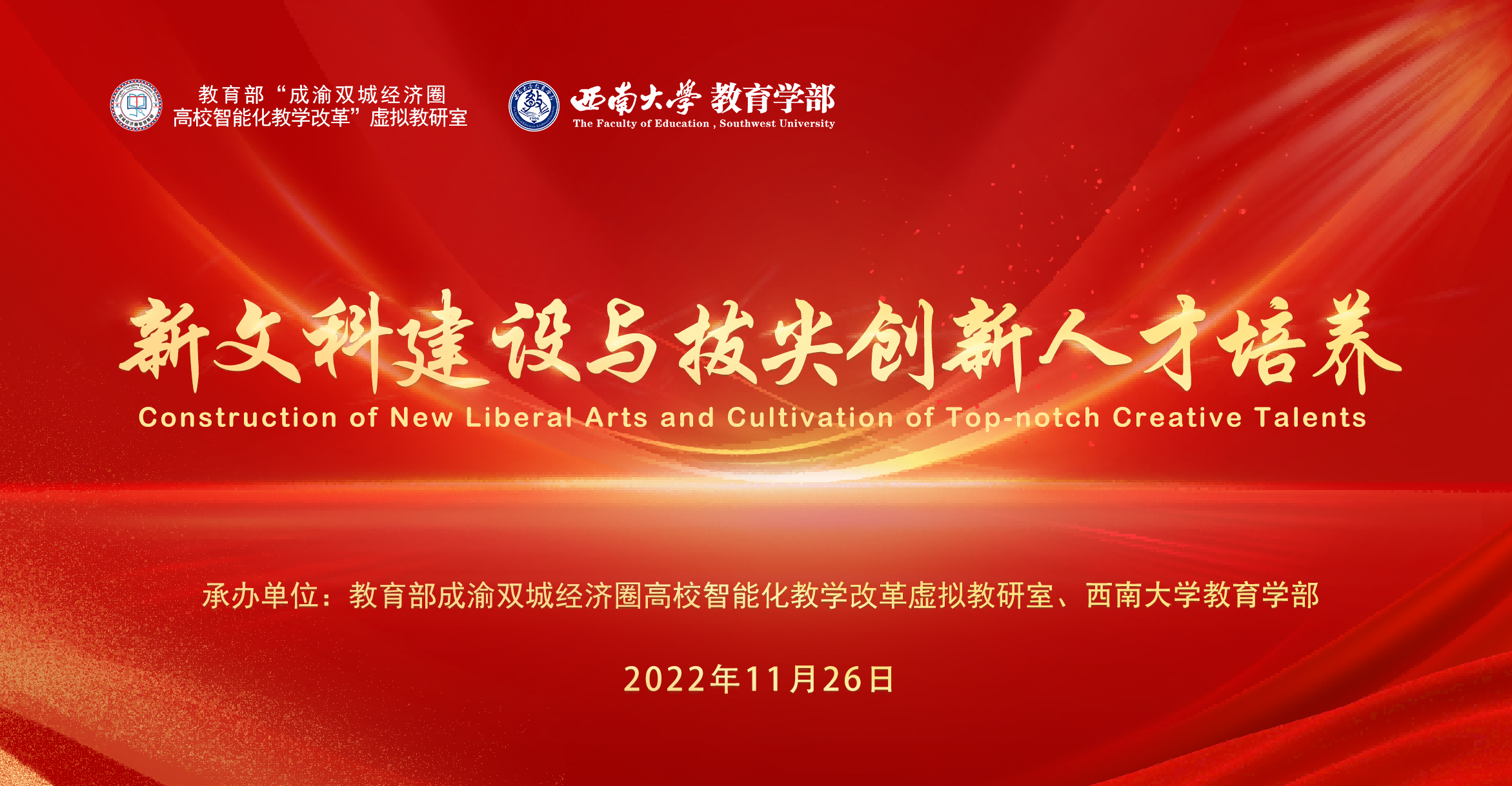 为深入学习贯彻党的二十大精神,落实党的二十大报告提出的“全面提高人才自主培养质量,着力造就拔尖创新人才”要求,11月26日,由教育部成渝地区双城经济圈高校智能化教学改革虚拟教研室和学校教育学部联合主办的“新文科建设与拔尖创新人才培养”研讨会在云端召开。副校长陈时见、崔延强出席会议。