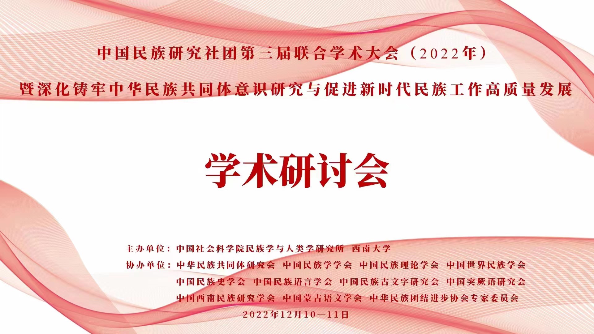 12月10日,中国民族研究社团第三届联合学术大会(2022年)暨深化铸牢中华民族共同体意识研究与促进新时代民族工作高质量发展学术研讨会成功召开。会议以线上视频的方式举办。