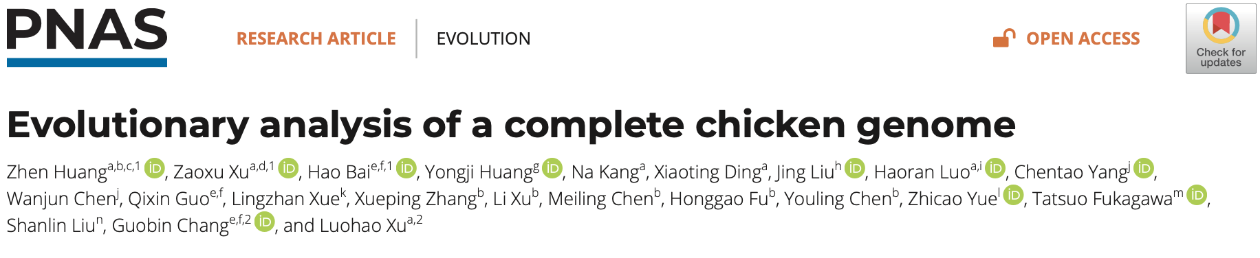 2月13日,徐洛浩教授课题组在《美国科学院院刊》(PNAS)发表题为Evolutionary analysis of a lete chicken genome(家鸡基因组完成图的演化分析)的研究论文,以中国特有家鸡品系胡须鸡为材料,在国际上率先完成一个家鸡的全基因组完成图谱。这是继去年人类基因组完成图公布以来,首个发表的脊椎动物基因组完成图,是基因组完成图谱绘制技术首次在经济动物中的应用。