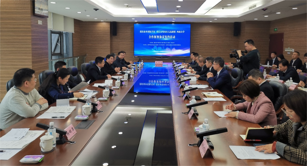 李旭锋在讲话中指出,学校与市乡村振兴局、璧山区加强乡村振兴合作,既是贯彻落实党的二十大精神的具体行动,也是服务现代化新重庆建设的务实举措。希望合作方以更大的格局谋划合作,以更实的举措推进合作,以更优的机制保障合作,着力探索校地合作助力乡村振兴的新路径、新方式,为重庆及璧山区乡村全面振兴贡献智慧和力量。