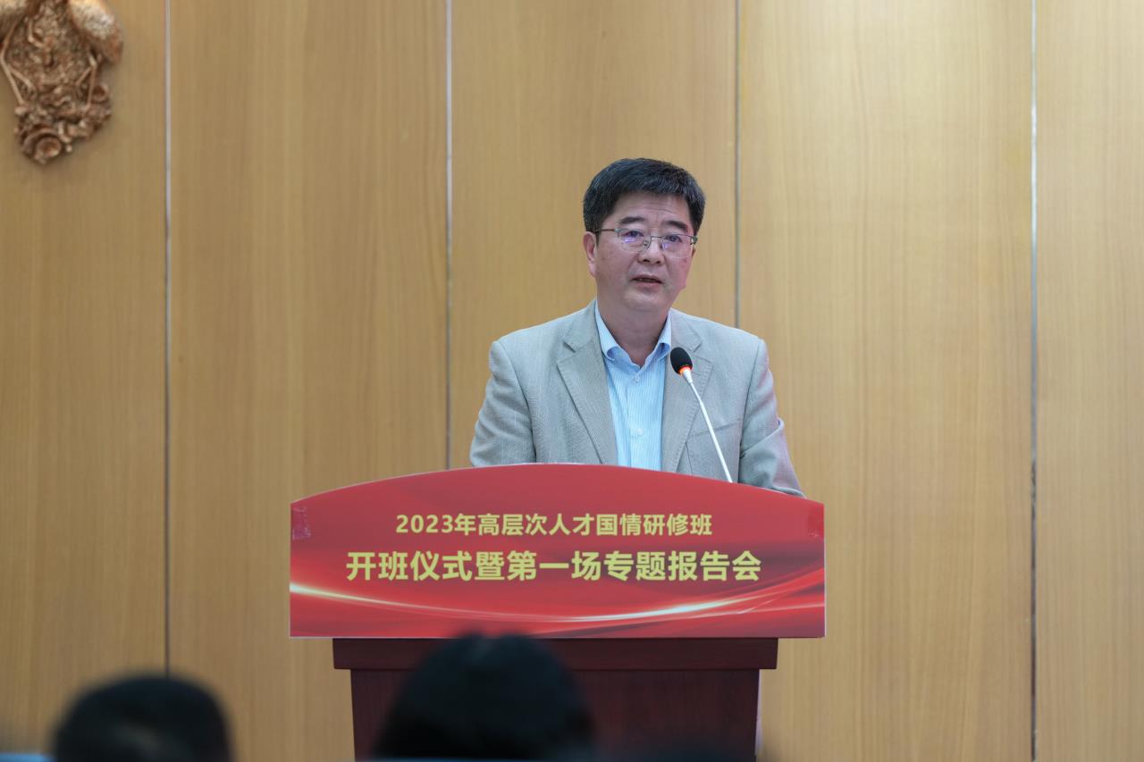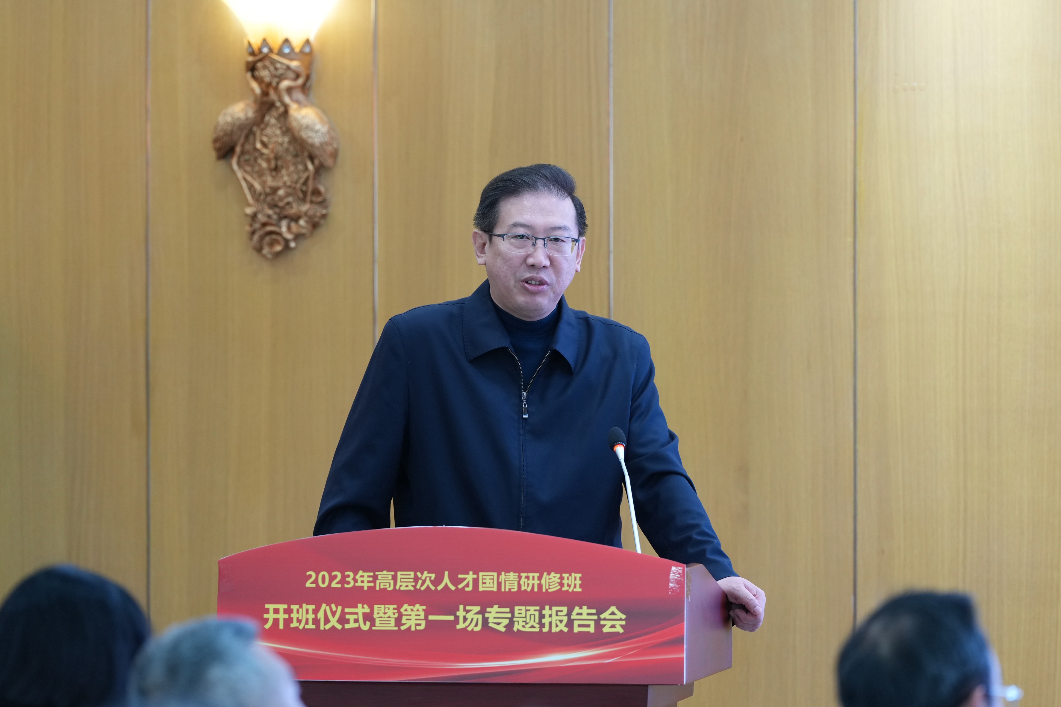 4月6日下午,“凝聚人才‘向心力’,踔厉奋发‘新征程’”——Beat365中国唯一官方网站2023年高层次人才国情研修班开班式暨首场报告会在田家炳书院举行。报告会由学校党委书记李旭锋主持,开班仪式由党委副书记安春元主持。学校副校长王进军、赵国华、王志坚,学校全职在岗国家级人才、相关职能部门负责人、各自然科学类教学科研单位党政主要负责人参加了开班式及首场报告会。