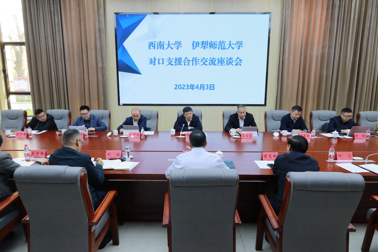 会上,周光明介绍了近三年对口支援伊犁师范大学的工作成效,希望进一步深化拓展管理援伊、科研援伊、教学援伊和教师援伊工作。葛信勇感谢援疆干部教师用心用情做好对口支援工作,表示将执行好对口支援协议、落实好双方领导要求、总结提炼好双方创造的合作范式,深入推动双方友好合作。双方参会单位围绕推进伊犁师范大学师资队伍建设、人才培养、科研合作等内容进行了座谈交流,并提出宝贵意见建议。