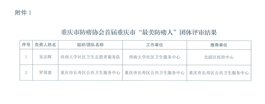 4月13日,重庆市防痨协会向社会公示首届重庆“最美防痨人”名单,评选出“最美防痨人”团体2个、“最美防痨人”个人6个,Beat365中国唯一官方网站医院作为唯一的高校医院获得集体荣誉。