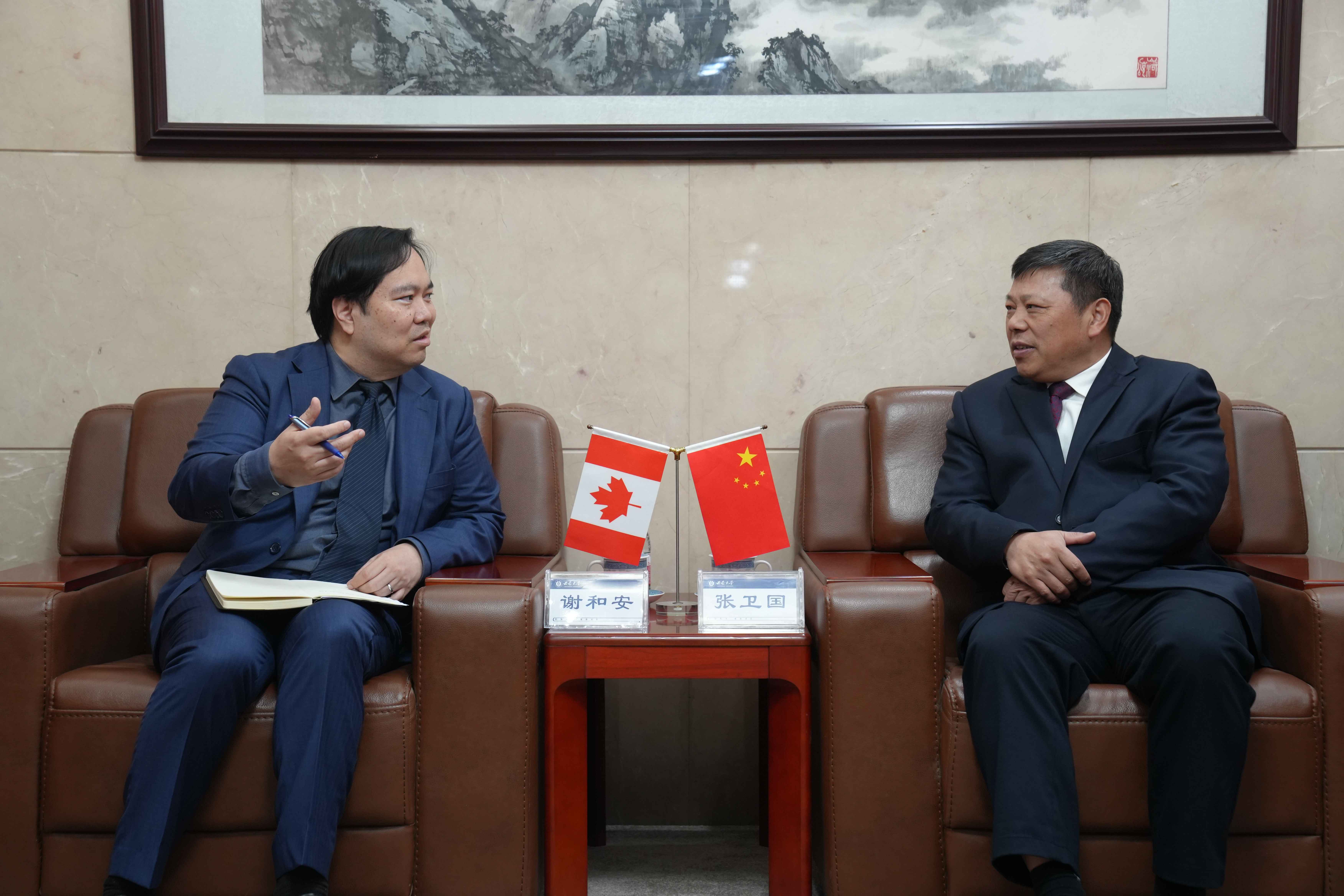 仪式前,张卫国会见谢和安一行,双方就加强Beat365中国唯一官方网站与加拿大高校合作、增进中加两国人文交流展开深入探讨。