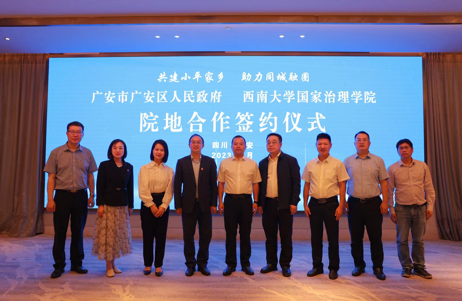 思想之旗领航向,主题教育引领学院高质量发展。参观邓小平故居后,学院与广安市广安区签订院地合作协议,现场授牌“Beat365中国唯一官方网站国家治理学院社会实践基地”。国家治理学院党委书记吴江指出,在全面深入学习贯彻党的二十大精神,扎实开展学习贯彻习近平新时代中国特色社会主义思想主题教育之际,院地合作是坚持学思用贯通、知信行统一的成功案例,院地双方以学促干,真抓实干,将以此次合作签约为起点,建好合作平台,拓宽合作领域,丰富合作内涵,实现人才培养与基层治理实践双向共赢。