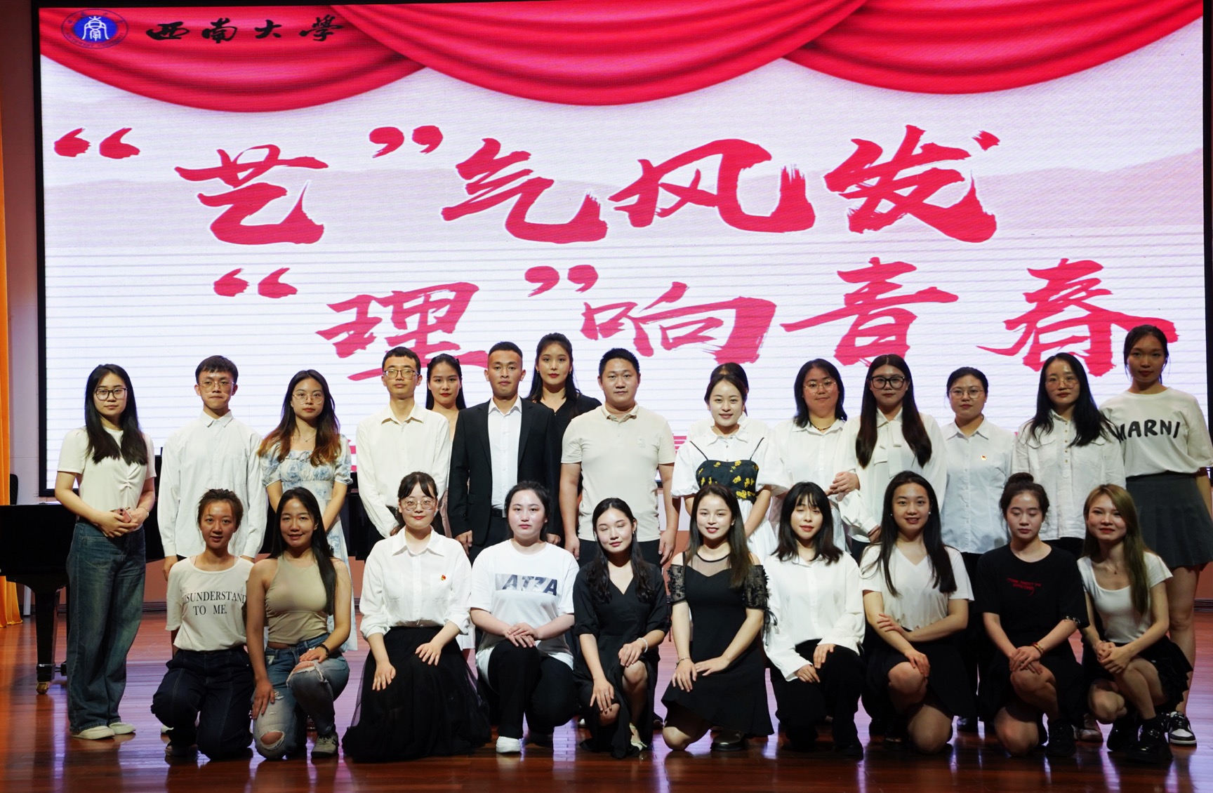 站稳讲台,唱响红色主旋律。学院2020级研究生党支部在北碚区兼善中学开办了一场“视听盛宴”。同学们通过唢呐、竹笛、箫、管、提琴等多种乐器演奏,民歌小调等声乐演唱,以及口技表演,引得师生满堂喝彩。据了解,所有表演作品均取材于经典红色音乐和中国优秀传统音乐作品,展演不仅增强了同学们对中西方音乐文化对比的审美体悟,更进一步传播了中华优秀音乐文化的魅力。