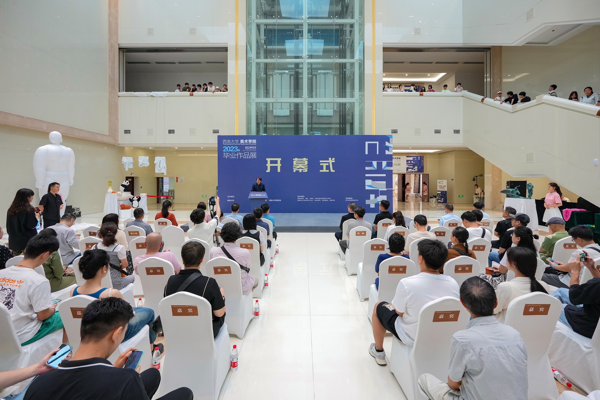 5月30日上午,学校美术学院2023届毕业作品展开幕式在学校博物馆举行。学校党委副书记黄杰,教务处、党委研究生工作部、党委学生工作部、团委、博物馆、国际学院等部门领导,学院师生代表等300余人参加开幕式。学院院长段运冬致开幕辞,傅吉鸿副教授作为毕业生指导教师代表发言。本科毕业生代表丁汀、研究生毕业生代表王子琰先后发言。学院党委书记张瑜宣布作品展开幕。