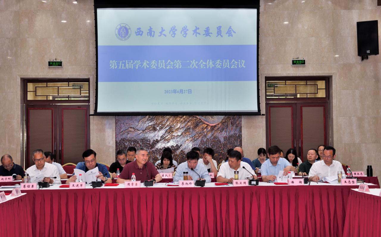 6月27日下午,学校第五届学术委员会在东方红会议厅召开第二次全体委员会议,会议由第五届学术委员会主任周常勇主持,第五届学术委员会委员、秘书长及副秘书长参会。