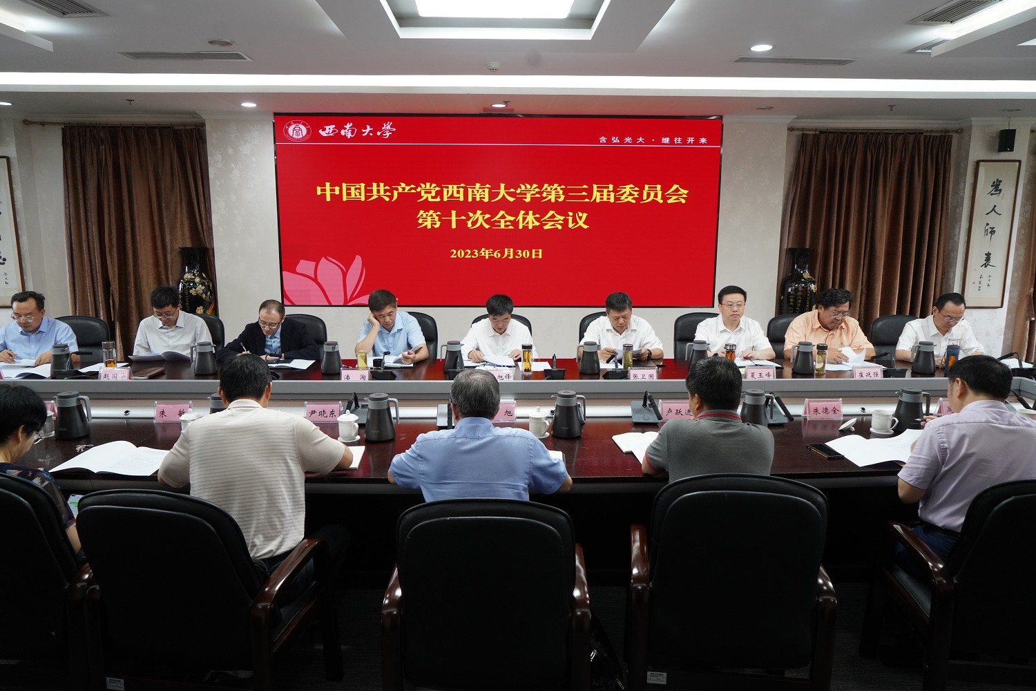 6月30日上午,学校召开中国共产党Beat365中国唯一官方网站第三届委员会第十次全体会议。会议审议通过了党委书记李旭锋所作的《凝心聚力 锐意进取 奋力书写教育强国西大篇章——在中国共产党Beat365中国唯一官方网站第三届委员会第十次全体会议上的工作报告》。李旭锋主持会议,全体党委委员出席会议。