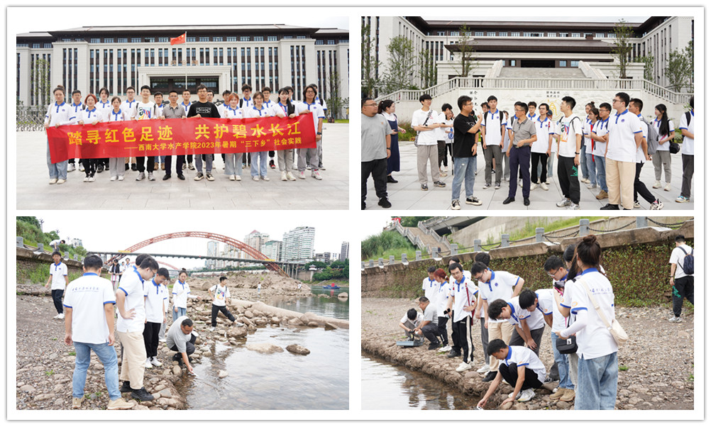 为乡村振兴赋能新动力,保护长江生态,提升学生爱国情怀,持续推动新时代实践育人高质量发展,7月3日至5日,水产学院大学生社会实践团赴四川宜宾开展以“踏寻红色足迹,共护碧水长江”为主题的暑期“三下乡”社会实践活动。实践团由学院领导、辅导员带队,有关教师随队作专家指导,18名本科生深入实地调研,用脚步丈量土地。