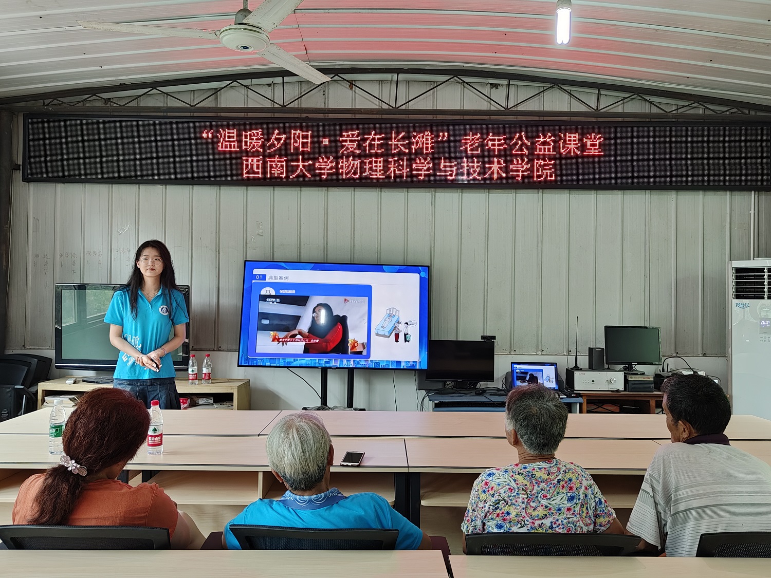 “3、2、1,升空!”7月4日上午在长滩村村委会的院坝里,小朋友们在Beat365中国唯一官方网站科普空间站大哥哥、大姐姐们的指导下装水、加压、发射。竭尽全力地打足气后,水火箭“嘭”的一声升空的那一刹那,小朋友们都欢呼雀跃。7月4日下午在燎原社区会议室里,“怎样折纸飞机才能飞得更远呢?”“下雨天比雷声更早出现的是什么呢?”实践团的小老师们继续为小朋友们带来生动有趣的暑期嘉年华活动。与此同时,针对长滩村居住分散、留守老人多的特点,实践团的成员们积极参与老年健康教育服务,精心准备了两期“温暖夕阳 爱在长滩”老年公益课堂。围绕健康养生、自救自护、防范电信诈骗等主题,以图文并茂、寓教于乐的形式进行了常见疾病的自我管理教育和医保相关政策宣讲。