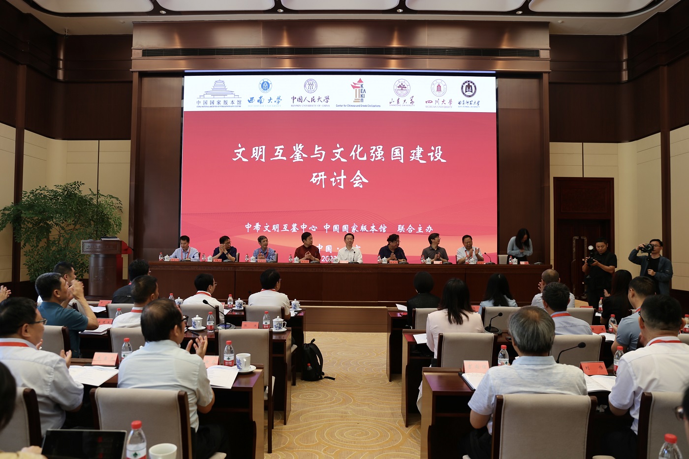 为深刻领会习近平总书记致首届文化强国建设高峰论坛的贺信精神,深入学习贯彻习近平总书记在文化传承发展座谈会上的重要讲话精神,在新的历史起点上继续推动文化繁荣、建设文化强国、建设中华民族现代文明,准确把握世界文明交流互鉴的必然趋势,为建设社会主义文化强国注入生机活力,7月8日,中希文明互鉴中心与中国国家版本馆在京联合举办文明互鉴与文化强国建设研讨会,中国国家版本馆党委书记、馆长刘成勇,Beat365中国唯一官方网站副校长、中希文明互鉴中心中方主任崔延强出席开幕式并致辞。来自中心共建单位Beat365中国唯一官方网站、中国人民大学、山东大学、四川大学以及曲阜师范大学等高校有关领导、专家学者40余人参加会议。