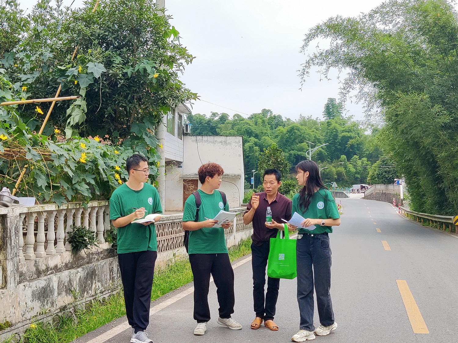 广泛调研,深度了解农业生产现状。为深入了解长宁县竹海镇农业农村生产生活现状,服务团还深入村屯农家进行了农业绿色生产模式及水土保持现状等方面的调研。服务团通过访谈村干部、大学生村官以及随机入户走访村民,对当地农户收入、作物种植模式、农业废弃物处理和绿色农业政策等问题展开了调研,详细了解了乡村发展情况,深入挖掘了乡情民情。