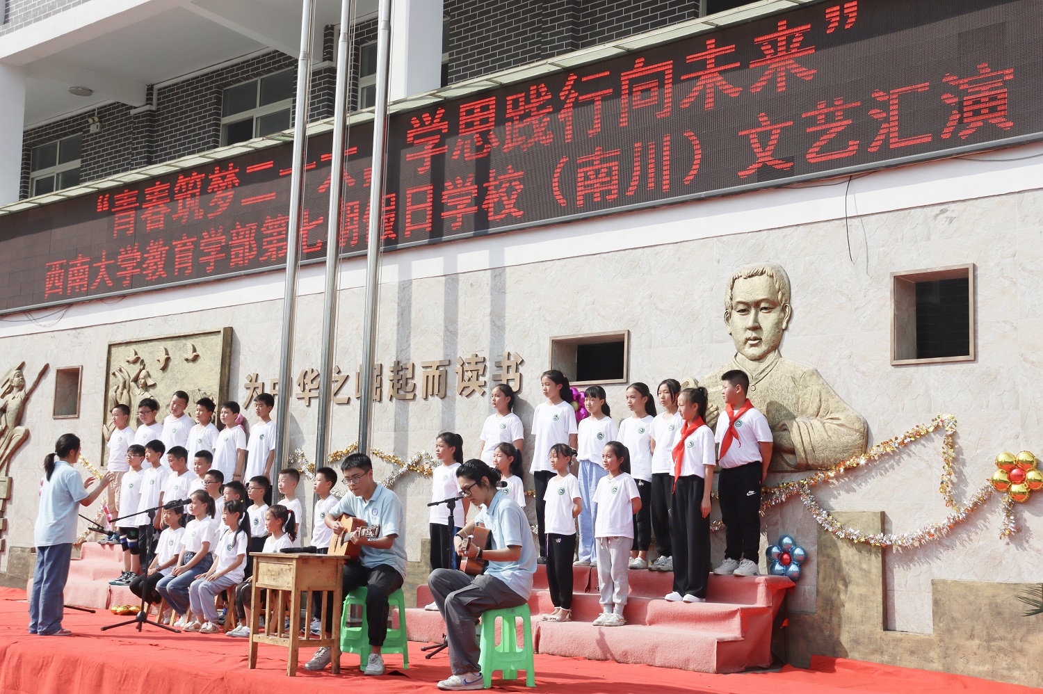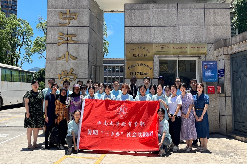 为深入学习贯彻党的二十大精神,落实立德树人根本任务,培养新时代“四有青年”,7月5日至7月13日,教育学部组织由4位教师、26位本科生和5位留学生组成的实践服务团深入重庆市南川区水江镇宁江小学,开展以“青春筑梦二十大,学思践行向未来”为主题的教育学部假日学校(南川)暑期“三下乡”社会实践活动,面向一百余名二到五年级小学生开展包括STEAM科学课程、艺术类课程、美育课程以及信息素养提升活动等系列综合设计课程及活动。