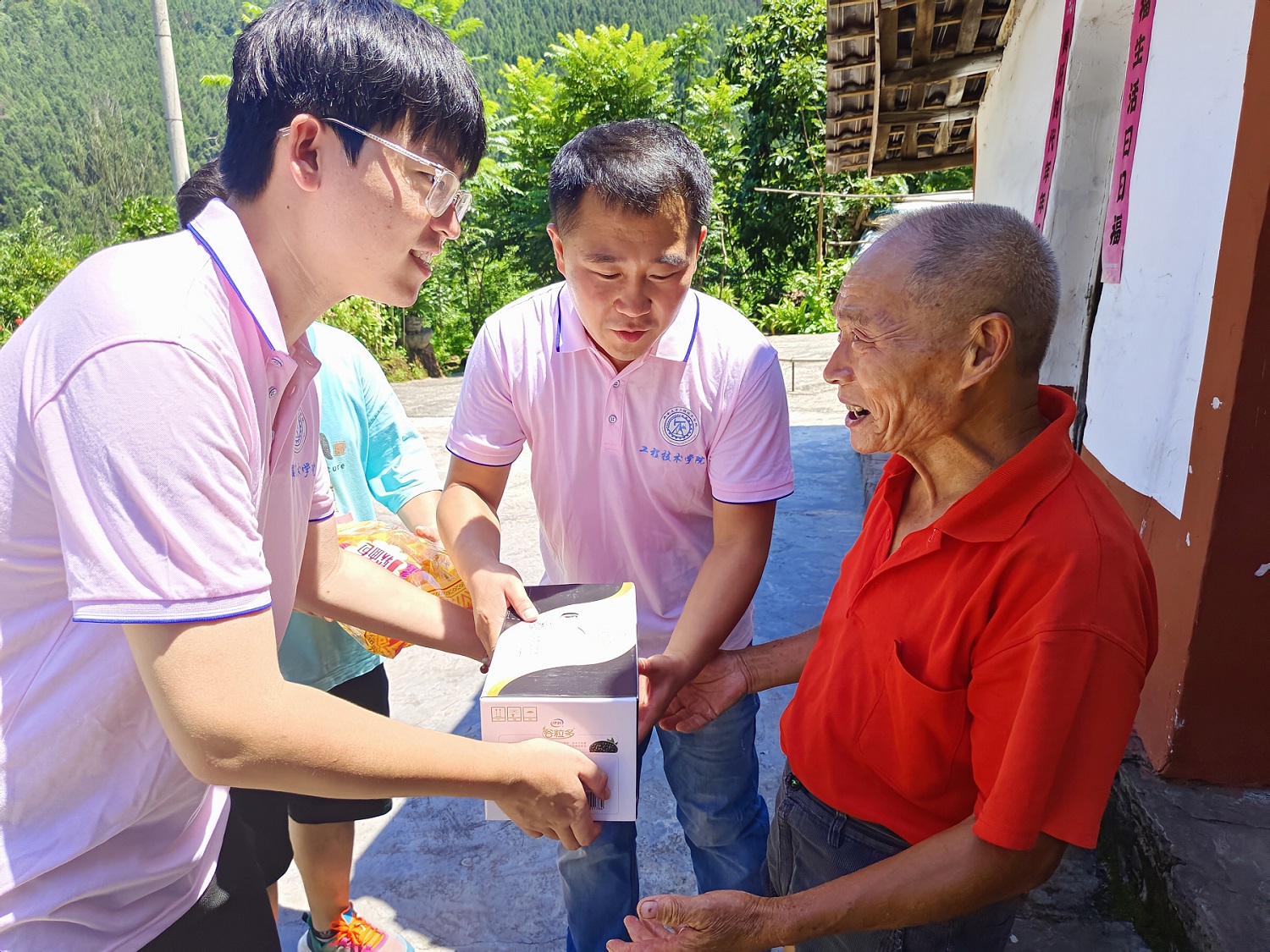 7月5日,实践团前往十直镇汀溪村开展关爱慰问活动。实践团帮助老人打扫卫生,了解老人在生活上的需要,听取他们对乡村振兴的看法和建议。实践团在身体力行中增强了作为新时代青年敢担当驻基层的责任意识。