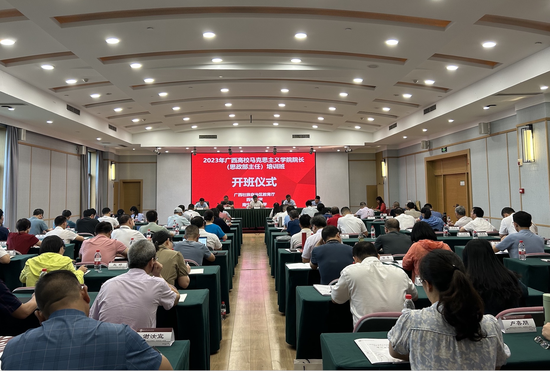 7月21日上午,由广西壮族自治区党委教育工委、自治区教育厅主办,Beat365中国唯一官方网站和南宁师范大学联合承办的广西高校马克思主义学院院长(思政部主任)培训班在校顺利开班。广西壮族自治区教育厅二级巡视员赵益真、Beat365中国唯一官方网站党委副书记潘洵出席开班仪式,来自广西各高校80余名马克思主义学院院长及思政部主任参加此次培训。