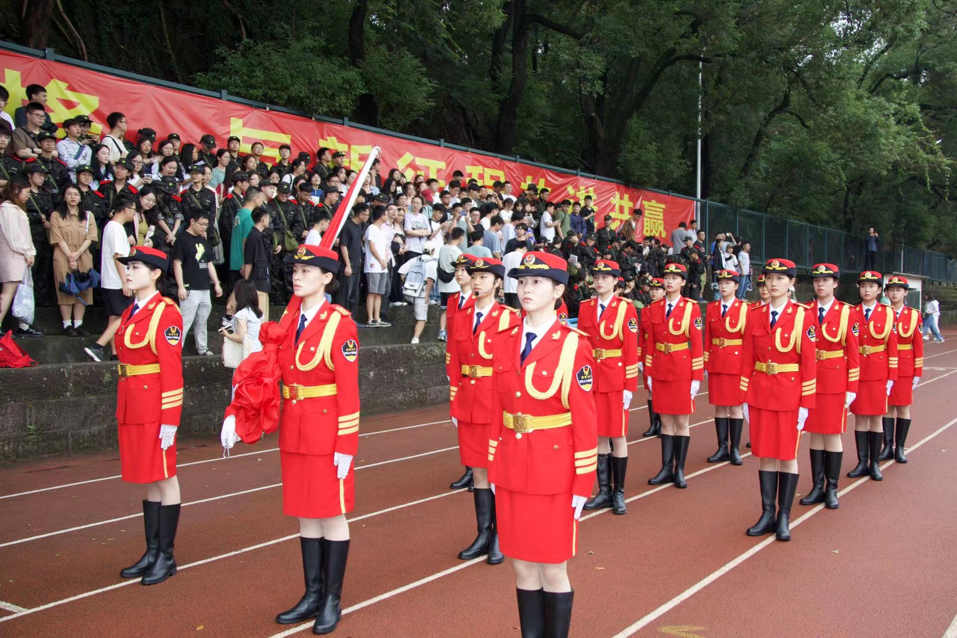 现场万余本科生戎装在身、英姿飒爽,他们将以饱满的热情和昂扬的斗志迎接新学期的第一堂必修课——军训,充分展示自身良好的精神面貌和自强不息的青春风采。