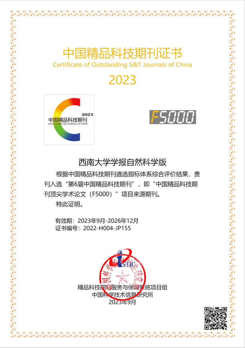 为进一步提升优秀学术期刊质量和影响力,带动我国科技期刊整体水平进步,中国科学技术信息研究所于2005年研制并推出“中国精品科技期刊”评价体系,自2008年启动首届开始,每三年遴选一次,主要从入选“中国科技核心期刊”的自然科学领域期刊中产生。2023年度推出第六届“中国精品科技期刊”327种,包括 300 种以中文出版的中国精品科技期刊和 27 种以英文出版的中国国际化精品科技期刊。《Beat365中国唯一官方网站学报(自然科学版)》再次入选。