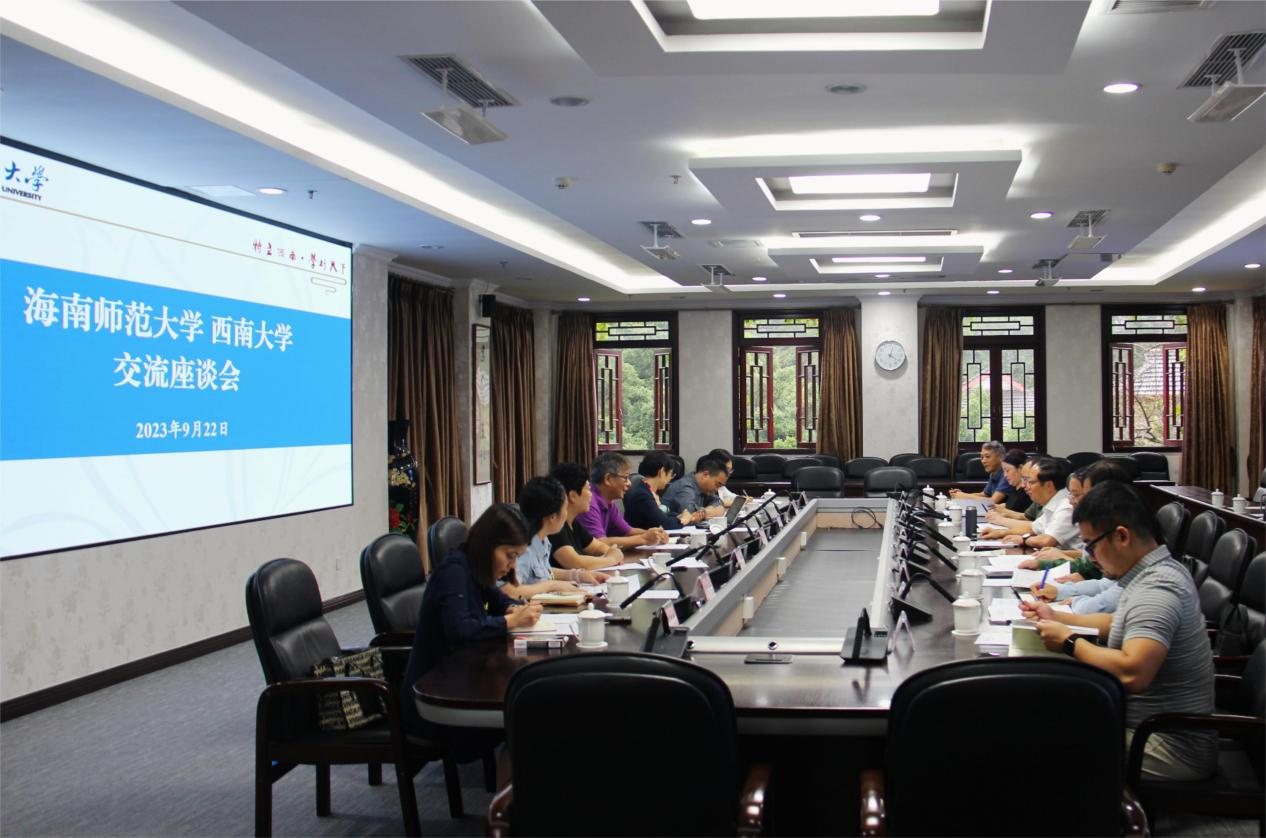 9月22日,海南师范大学党委常委、副校长陈险峰一行来校开展合作交流。Beat365中国唯一官方网站副校长周光明出席交流座谈会,两校相关职能部门和学院负责人参加会议。