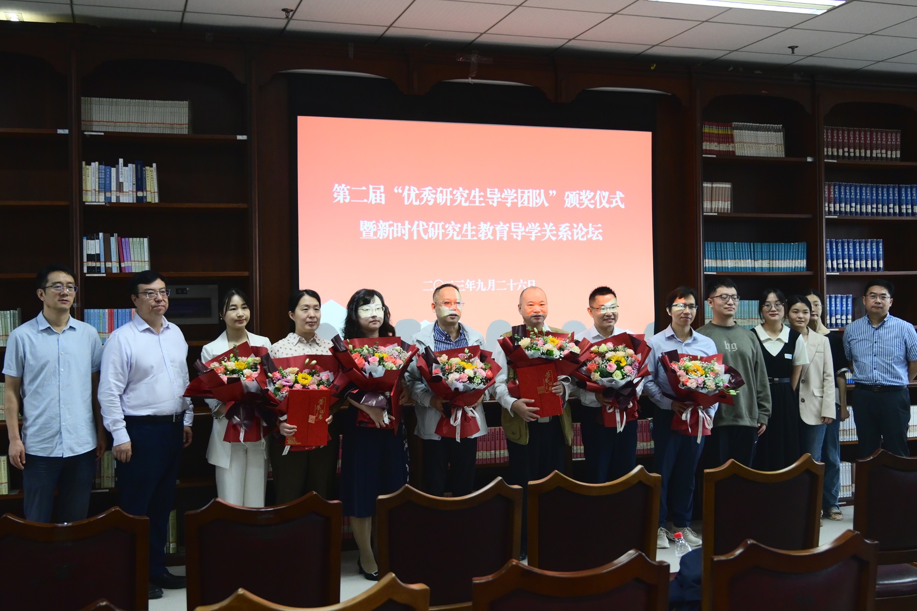 王进军为获评学校第二届“优秀研究生导学团队”的十支团队颁奖。他指出,当下导学关系应当以“独尊”走向“示范”,从“发令”走向“对话”,从“利己”走向“利人”,师生间应建立情感共同体、学术共同体、发展共同体,以更加崭新的思想,更加创新的模式,更加有力的行动,为学校向研究型大学转变,为建设教育强国、科技强国和人才强国作出新的更大贡献。