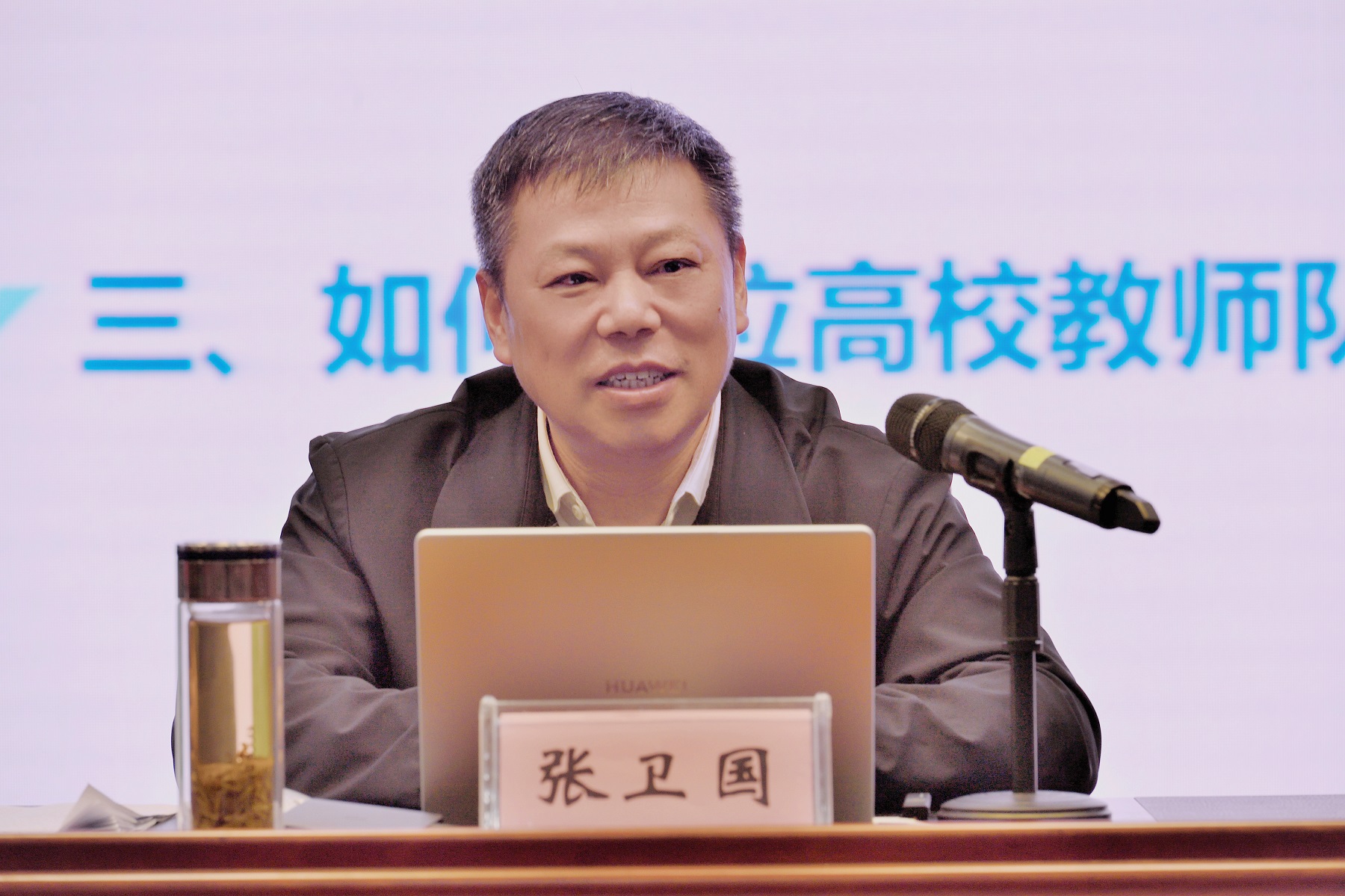 张卫国围绕“当前高等教育的大背景如何,作为教师我们应当怎样去理解认识它”“立足新时代新征程,Beat365中国唯一官方网站应有何为”“如何定位高校教师队伍,我们应有何为” 三个问题和大家进行了深入交流,对教师们扣好作为高校教师的第一粒扣子,迈好事业发展的第一步提出希望和要求。