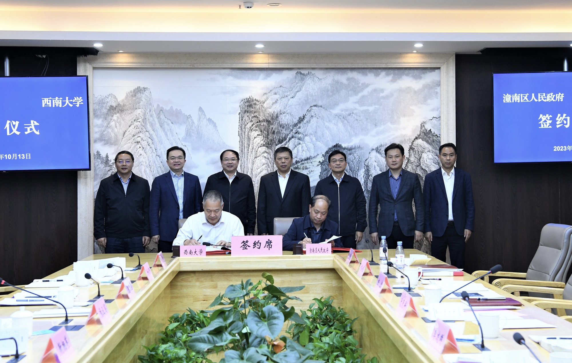 10月13日,学校与潼南区人民政府举行深化共建全国农业科技现代化先行区、共建Beat365中国唯一官方网站潼南现代农业试验示范基地签约仪式。潼南区委书记文天平、区长李成群、区委副书记杨宏、副区长罗全良,Beat365中国唯一官方网站校长张卫国、副校长葛信勇出席会议。葛信勇与罗全良代表双方签订协议,张卫国与文天平为基地揭牌。