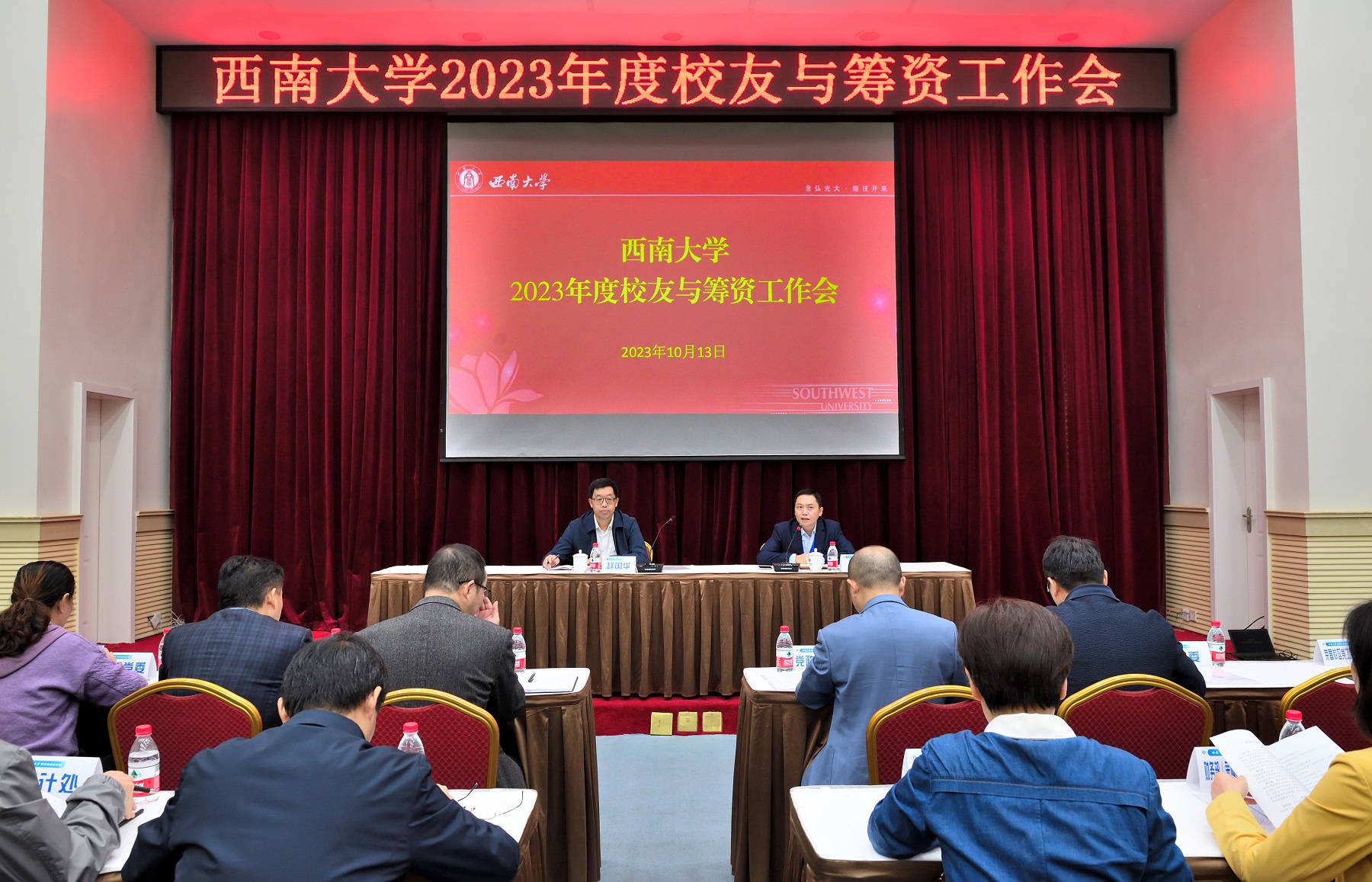 10月13日上午,学校2023年度校友与筹资工作会在桂园金桂厅召开。副校长赵国华出席会议,各二级单位相关负责人参加会议。对外联络办公室主任唐军主持会议。