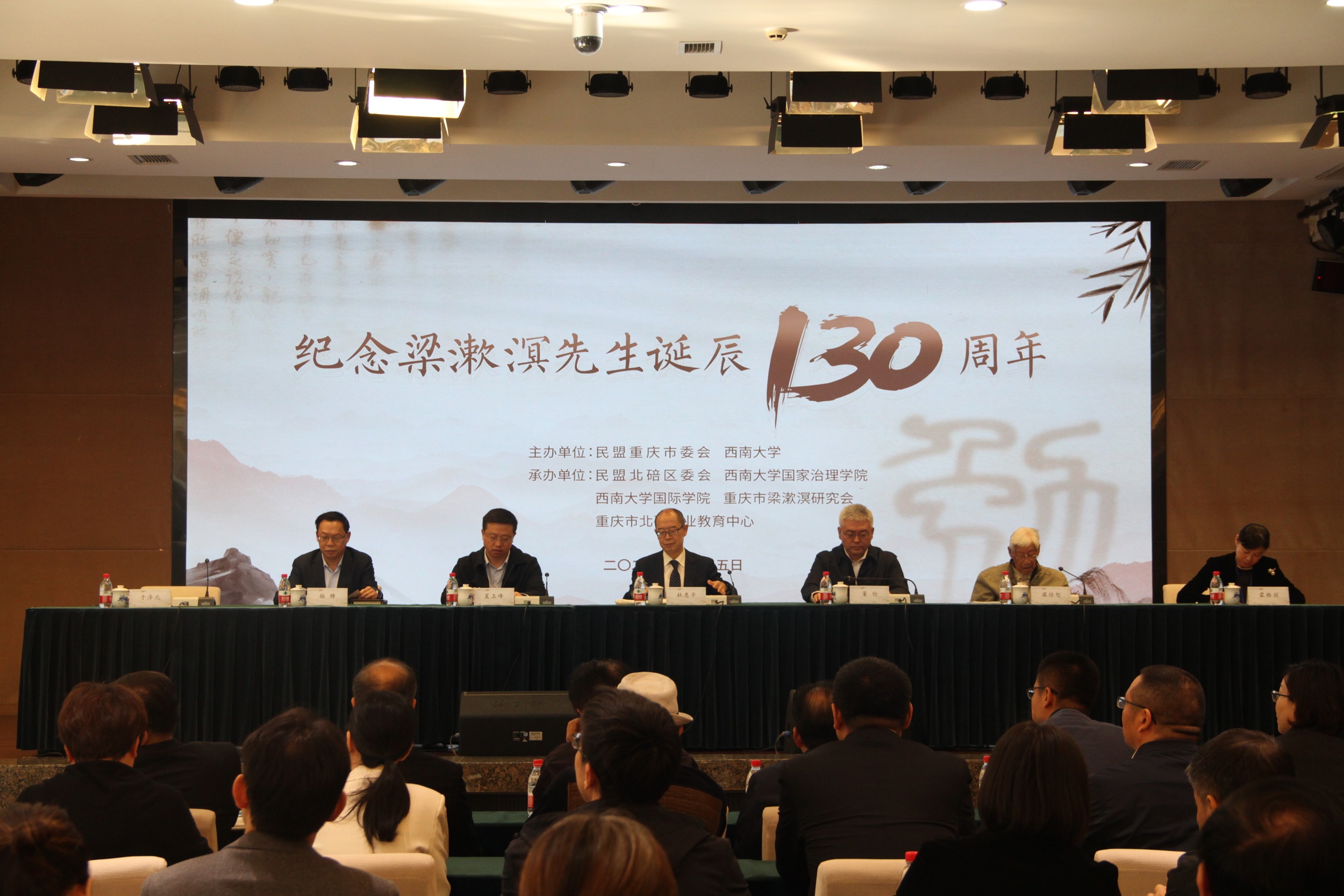 今年是梁漱溟先生诞辰130周年。为传承先贤精神风骨,延续先生学术文脉,10月14日至15日,学校与民盟重庆市委联合举办系列纪念活动。重庆市政协副主席、民盟重庆市委主委、重庆理工大学校长杜惠平,北碚区政协主席董伦,Beat365中国唯一官方网站党委副书记、纪委书记夏玉峰,副校长葛信勇等领导出席相关活动。专家学者、民盟盟员、梁漱溟先生亲属代表和名家大师后人等230余人参加活动。