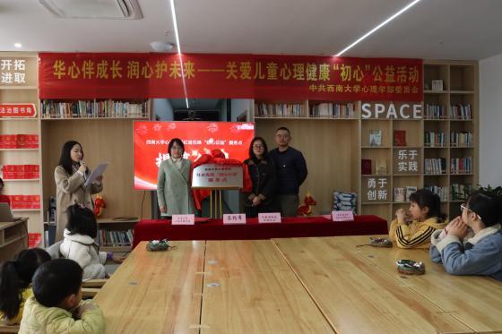 在揭牌仪式上,心理学部党委专职组织员熊丹、华联社区综合服务体运营方西柚社创代表张崇飞与华联社区党委书记、主任冷姝共同签署合作协议,并为服务点揭牌。服务点将整合三方资源、发挥各自优势,为社区群众提供更加精准有效的心理关爱服务。