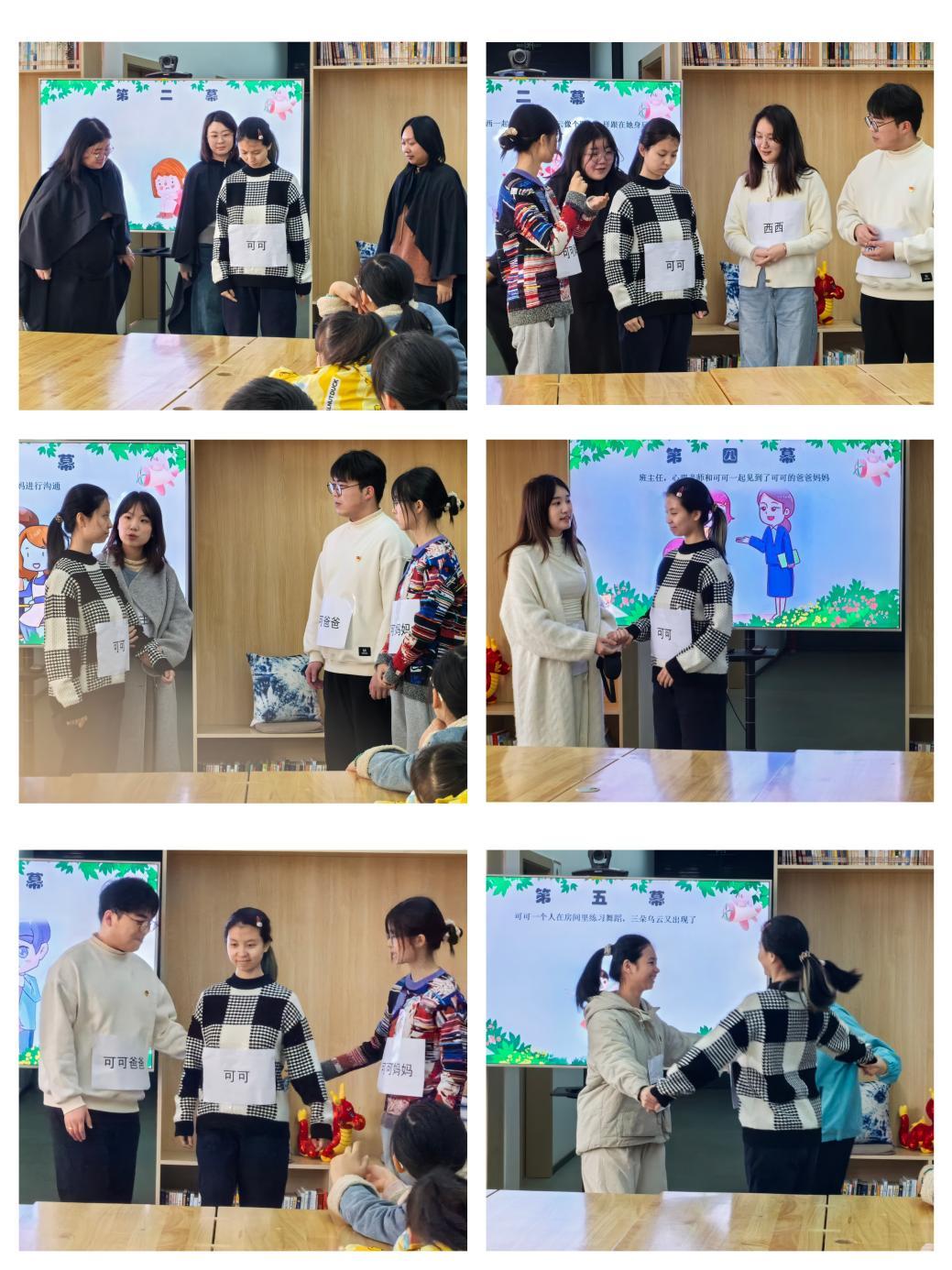 志愿者表演以情绪为主题的心理剧《乌云乌云快走开》。讲述了一个小女孩在“悲伤”“愤怒”“自卑”三朵情绪乌云笼罩下的困境,以及在家长、班主任和心理老师的帮助下赶走乌云、重获快乐与自信的故事。引人入胜的表演引发了小朋友对日常生活中不同情绪的认知和思考,也引发了家长对孩子情绪健康的重视。