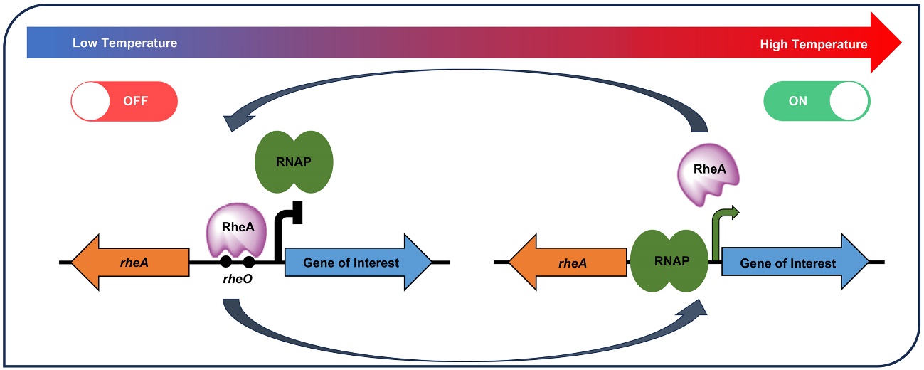 基因表达的精确调控是代谢工程与合成生物学的核心技术之一,是实现高值化合物在微生物细胞工厂中“智造”的重要手段。链霉菌是一类具有重要经济价值的革兰氏阳性菌,具有产生多种生物活性天然产物的能力,在生物医药、农业等领域应用广泛。然而,链霉菌的基因表达调控复杂,经过几十年的研究,仅有少数几个基因诱导表达系统可供选择,且这些诱导表达系统存在一定的局限性,如高渗漏表达、诱导剂毒性、诱导剂易降解和不可逆性等问题。针对这些难题,牛国清研究员团队先后利用合成生物技术开发了两套链霉菌诱导表达系统:纤维二糖诱导表达系统(ACS Synthetic Biology 2021)和鼠李糖诱导表达系统(ACS Synthetic Biology 2024)。这两套诱导表达系统解决了高渗漏表达和诱导剂毒性问题,但诱导剂可被当作碳源利用,且添加纤维二糖或鼠李糖后的诱导过程是不可逆的。近日,牛国清研究员团队在链霉菌基因表达调控领域取得新进展,相关研究论文 “A tunable and reversible thermo-inducible bio-switch for streptomyces” 于国际知名学术期刊《Nucleic Acids Research》(《核酸研究》)正式发表。该研究成功构建了一种基于温度感应调控因子 RheA 的新型温度诱导基因表达调控系统(StrepT-switch),为链霉菌的基因工程改造及天然产物合成研究开辟了新路径。