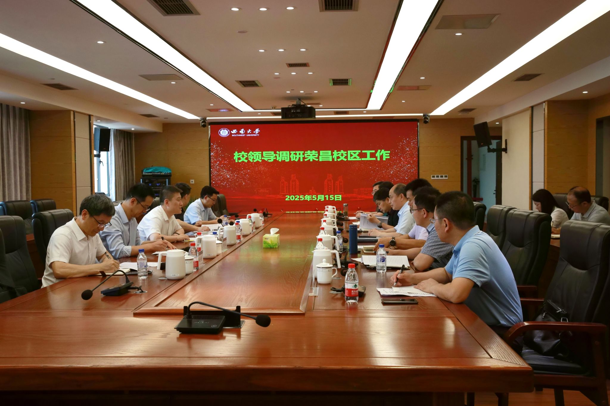 当日下午,范大明主持召开调研荣昌校区工作会,荣昌校区党工委 管委会、商贸学院、动物科学技术学院、动物医学院、水产学院负责人作工作汇报。