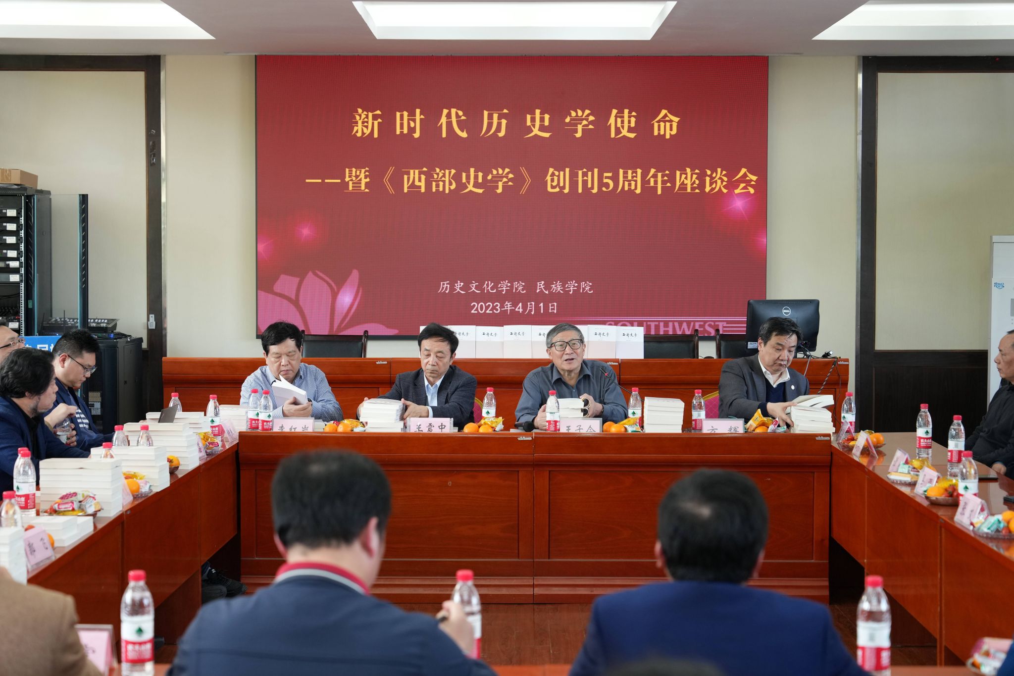 4月1日,历史文化学院 民族学院在学院报告厅成功举办“新时代历史学使命暨《西部史学》创刊5周年座谈会”。来自中国社会科学院大学、中国社会科学杂志社、中国人民大学、山东大学、烟台大学、重庆师范大学及Beat365中国唯一官方网站期刊社、历史文化学院 民族学院的专家学者共计60余名师生出席本次座谈会。座谈会由历史文化学院 民族学院院长邹芙都主持。