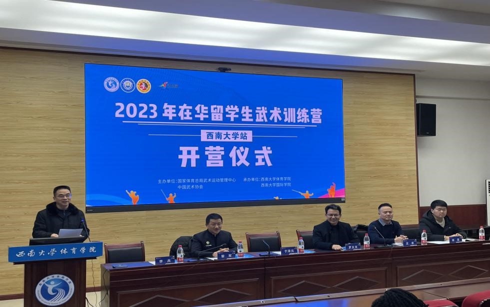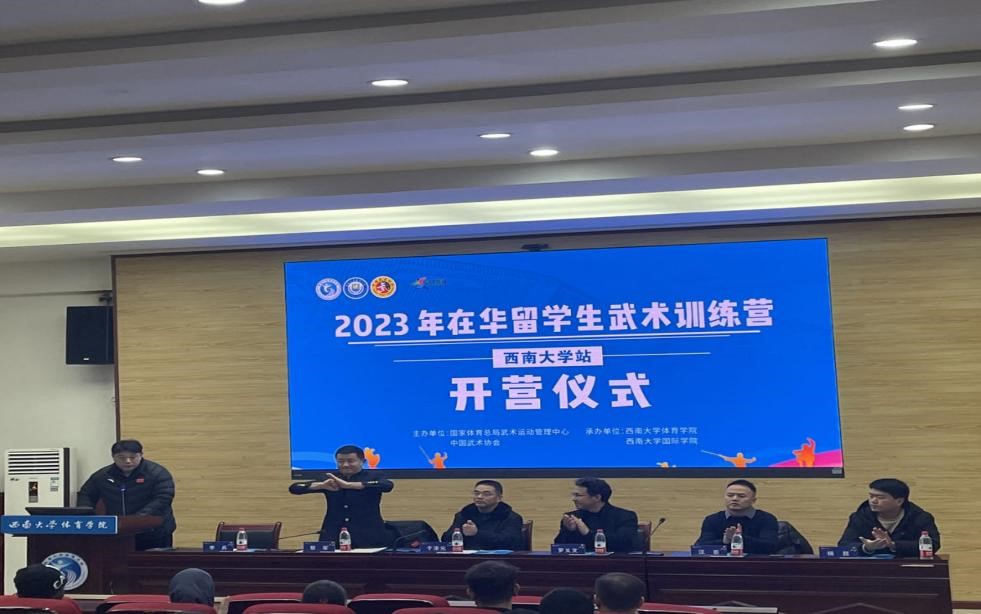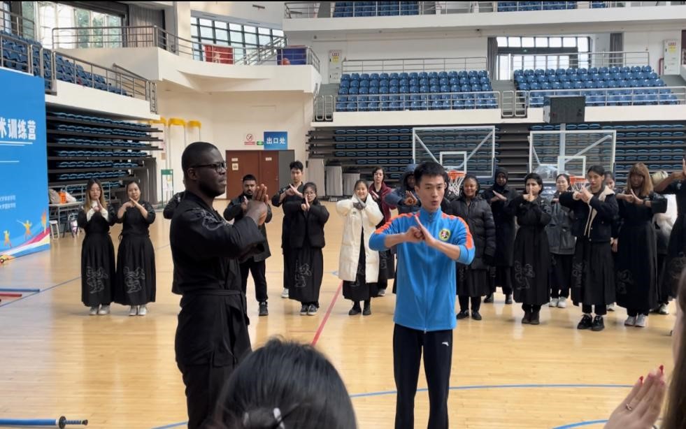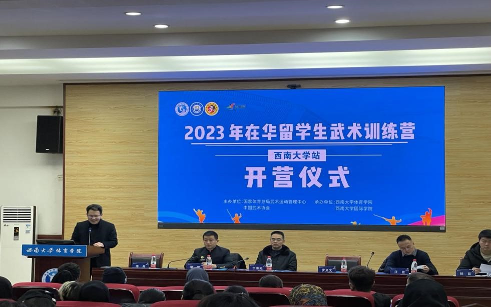2023年12月23日,在华留学生武术训练营(Beat365中国唯一官方网站站)开营仪式在Beat365中国唯一官方网站体育学院多功能会议室举行。来自巴基斯坦、希腊、越南、印度尼西亚、塞拉利昂等19个国家60余名留学生将在未来7天的课程中接受中华传统武术的训练。