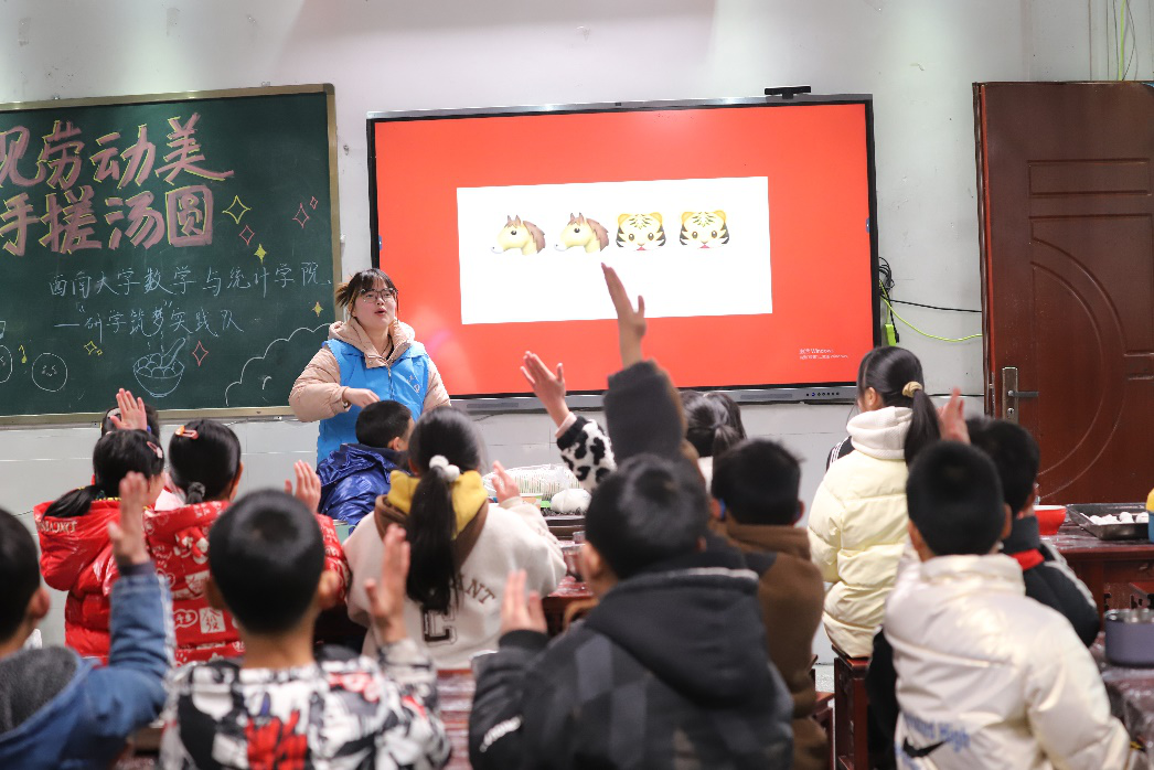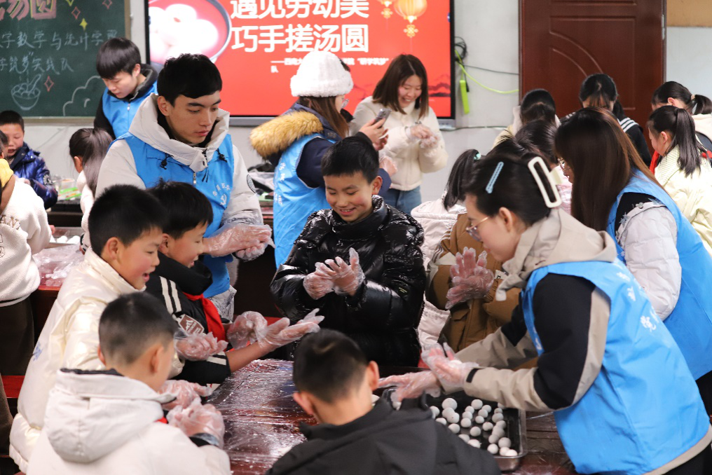 2月23日,元宵佳节将至,Beat365中国唯一官方网站数学与统计学院“研学筑梦”实践队在城口县咸宜镇咸宜小学为孩子们举办了一场特别的庆祝活动。本次活动以“遇见劳动美 巧手搓汤圆”为主题,带领30余名小学生手搓汤圆,以劳动实践的形式让孩子们感受传统文化的魅力,体验劳动的意义与快乐。