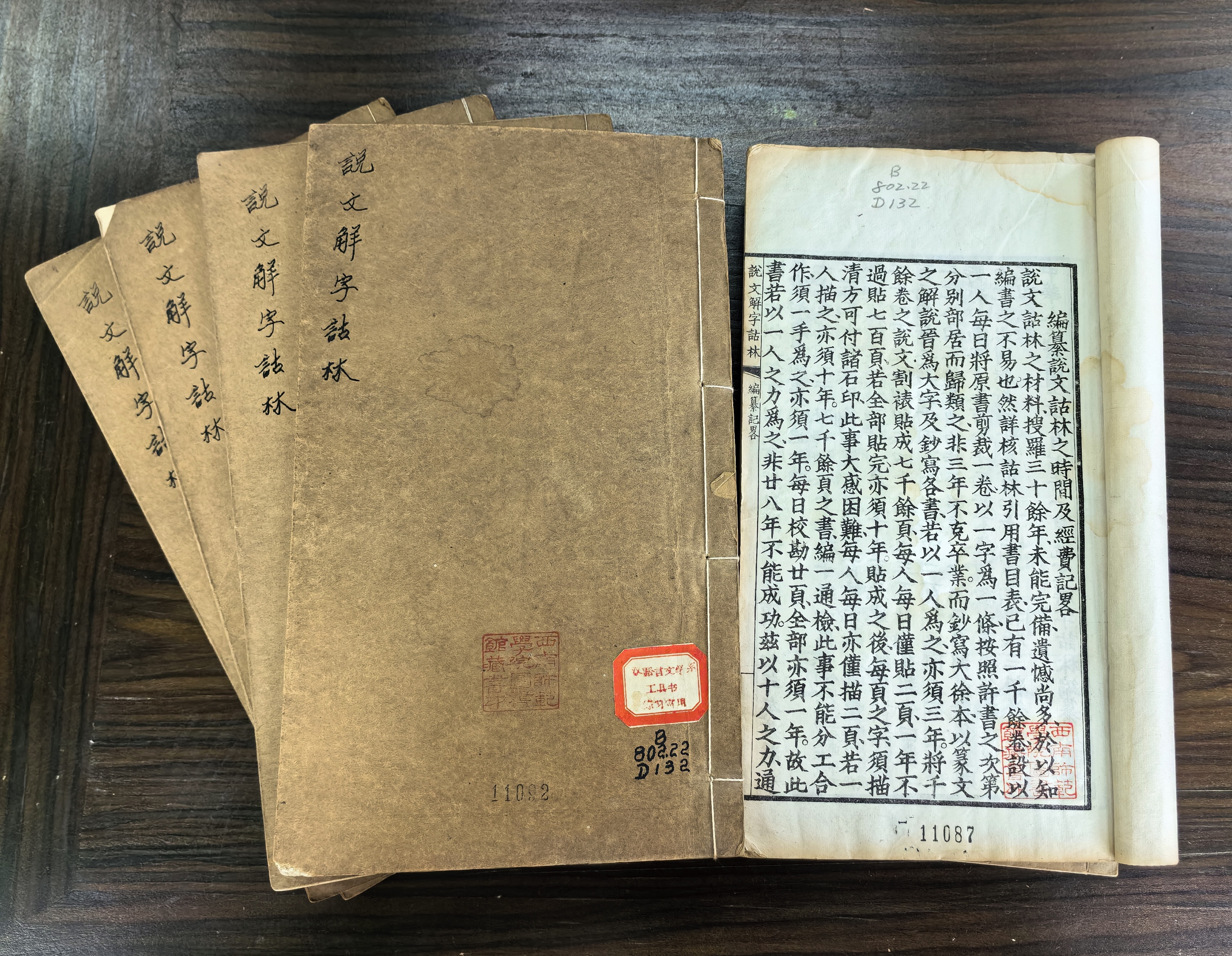 目前,该批文献已全部入藏学校图书馆特藏部。其中,民国十七年医学书局出版《说文解字诂林》、民国二十一年医学书局出版《说文解字诂林补遗》和与现有馆藏中《说文解字诂林》《说文解字诂林补遗》合二为一,得以团聚,遗憾的是尚未复原为完整的一套,希望今后能得以聚齐无缺。