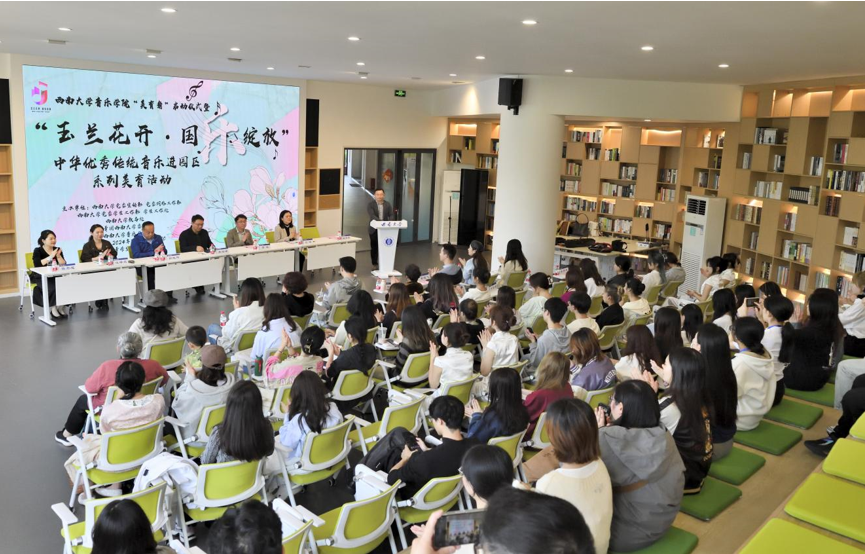 春光作序,万物和鸣。在这个春回大地,万物复苏的美好时节,为全面贯彻落实党的教育方针,落实立德树人根本任务,弘扬中华美育精神,坚定文化自信,实现美育浸润学生,培养德智体美劳全面发展的社会主义建设者和接班人,音乐学院在学校相关部门的指导和帮助下,联动第一二课堂,经过一年的筹备,于3月28日下午在学校青李空间正式启动成立音乐学院“美育角”,并举办“玉兰花开·国乐绽放”中华优秀传统音乐进园区系列美育活动。