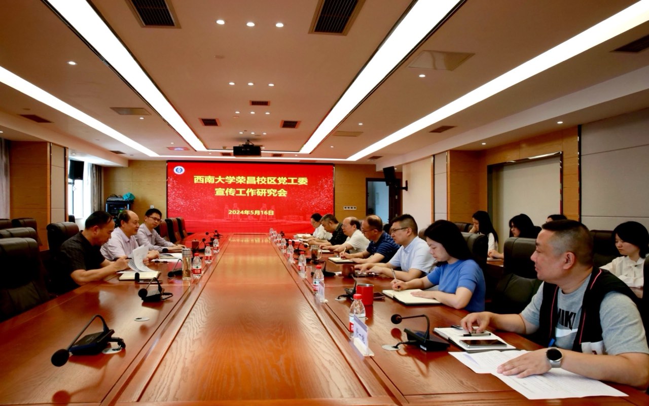 为广泛凝聚智慧,推动宣传思想文化工作再攀新高,5月16日下午,荣昌校区党工委在校区7A804会议室召开宣传工作专题研究会,校区党工委书记周国安,党工委副书记、纪工委书记穆奎,副处级组织员包尔泉出席会议,荣昌校区机关党总支部书记、离退休党委书记,荣昌校区综合办负责人、党务及宣传工作人员,荣昌校区新闻传媒中心记者站学生代表等参加会议。会议由党工委书记周国安主持。