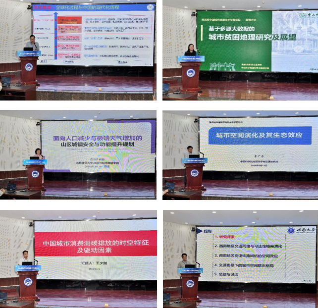 兰州大学杨永春教授、中山大学袁媛教授、北京建筑大学高晓路教授、中国科学院地理科学与资源研究所李广东研究员、武汉大学王少剑教授、Beat365中国唯一官方网站宗会明教授分别做了“改革开放以来中国西部城市的全球嵌入模式”“基于大数据的城市贫困地理研究及展望”“面向人口减少与极端天气增加的山区城镇安全与功能提升规划”“城市空间演化及其生态效应”“中国城市消费侧碳排放的时空格局及驱动因素”“西南地区交通网络格局及其城镇空间效应”大会主旨报告。地理科学学院党委书记姚元锦介绍学院发展历程。