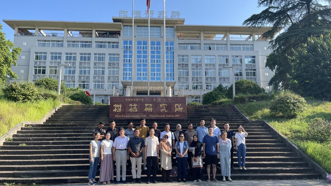 9月17 至26日,受澳大利亚国际农业研究中心(ACIAR)国际合作项目资助,印度尼西亚代表团一行12人来Beat365中国唯一官方网站柑桔研究所交流学习柑橘生产与黄龙病防控技术。所长王雪峰、副所长曹孟籍带领资源与育种中心、栽培与生理中心、苗木脱毒中心和柑桔加工与品控物流中心等相关专家参与此次交流活动。