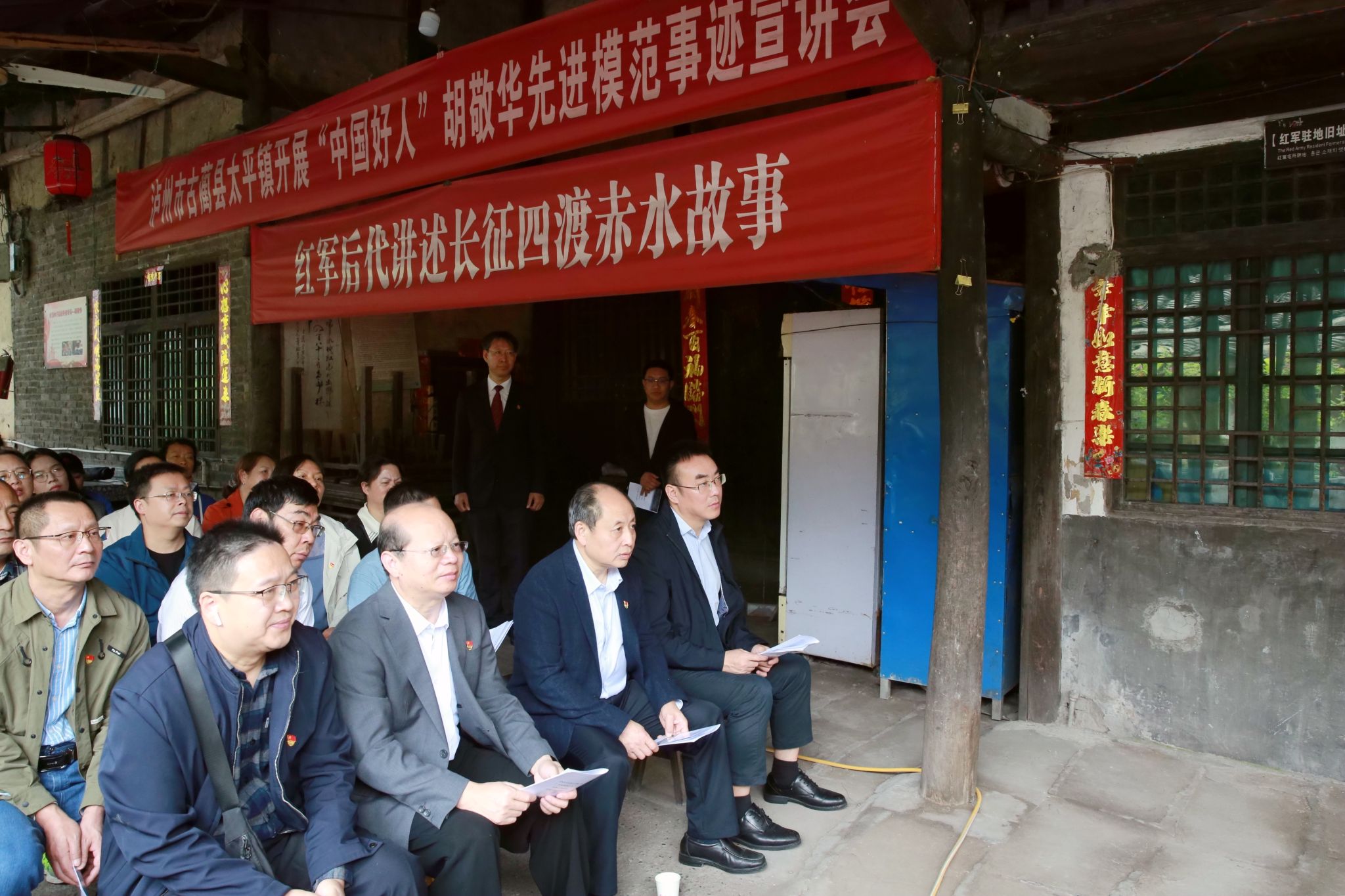 在太平镇长征街,红军战士后代、四川好人胡敬华老人为全体党员同志讲述了红军故事。“古蔺县太平镇的太平渡渡口,是红军二渡和四渡赤水的重要渡口。红军纪律严明、秋毫无犯,让太平镇百姓从最初的害怕变为衷心拥护。二渡赤水时,当地船工主动把船划到渡口,老百姓也把自家的门板拆下送到赤水河边,帮助红军搭浮桥顺利过河。”胡敬华老人朴素的语言、生动的故事让全体党员同志接受了一次精神信仰的洗礼。