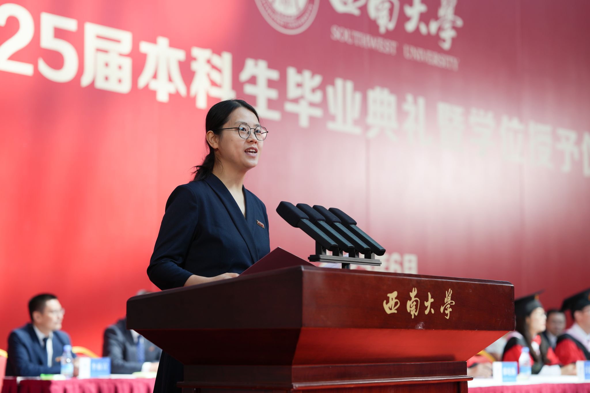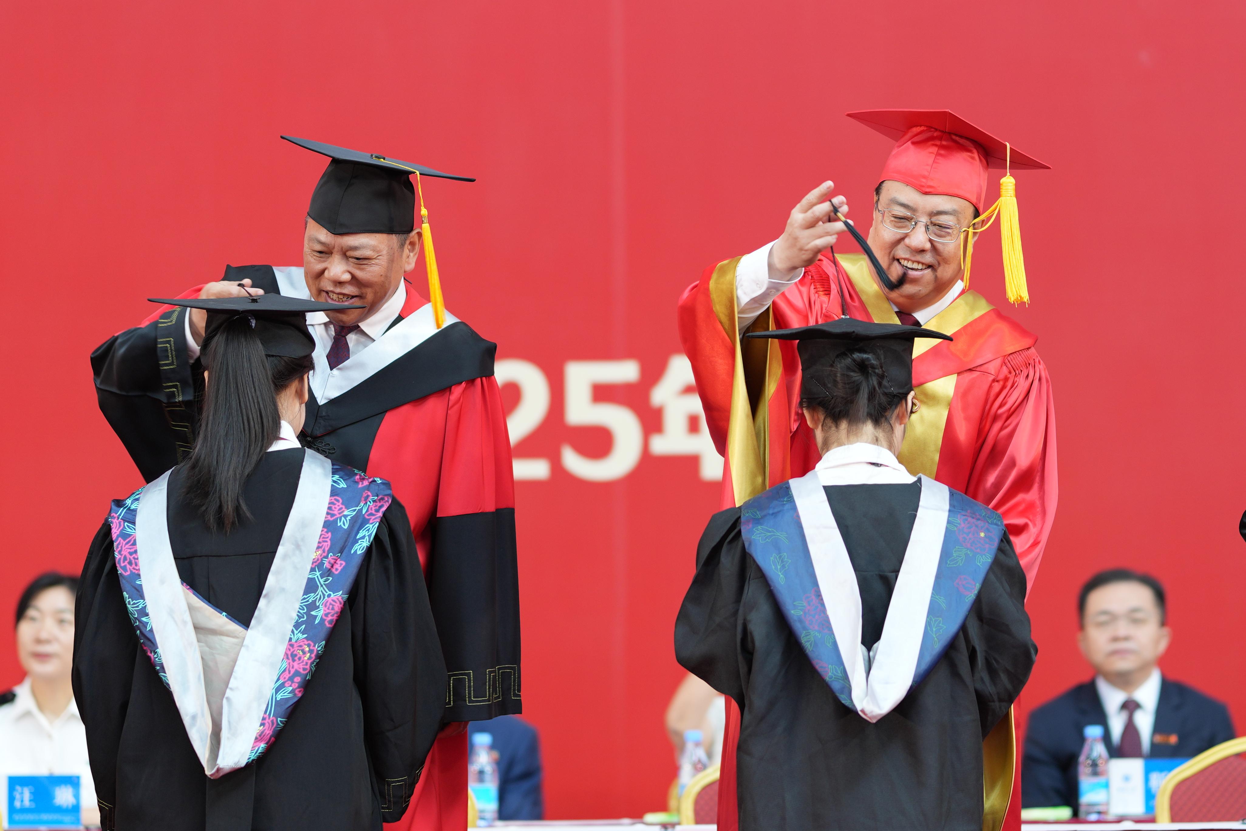 6月26日上午,学校在北碚校区中心体育馆和荣昌校区学生活动中心同步举行2025届本科生毕业典礼暨学位授予仪式,庆祝9434名本科毕业生圆满结束大学生活,开启人生新篇章。