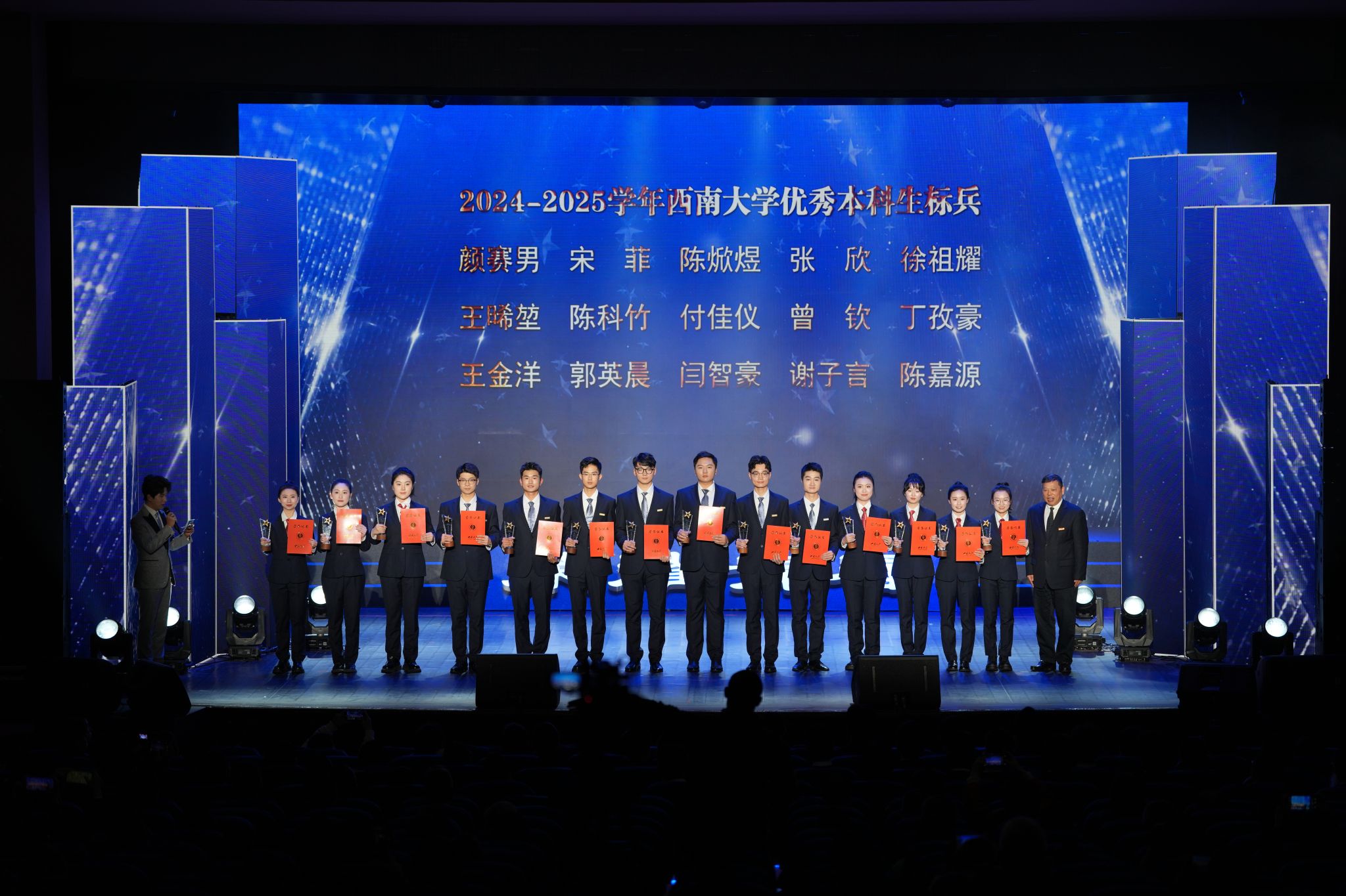 为进一步激励全校学生见贤思齐、追求卓越、奋发超越,积极营造崇尚先进、学风严谨、昂扬向上的校园文化氛围,12月18日晚,“荣耀青春”2024-2025学年优秀学生星光盛典在光大礼堂举行。全体在家校领导、党委常委出席活动并为受表彰学生颁奖。学校学生工作领导小组成员单位负责人,教学单位党政主要负责人、分管学生工作和教学工作负责人、辅导员代表、学生代表等800余人参加活动。